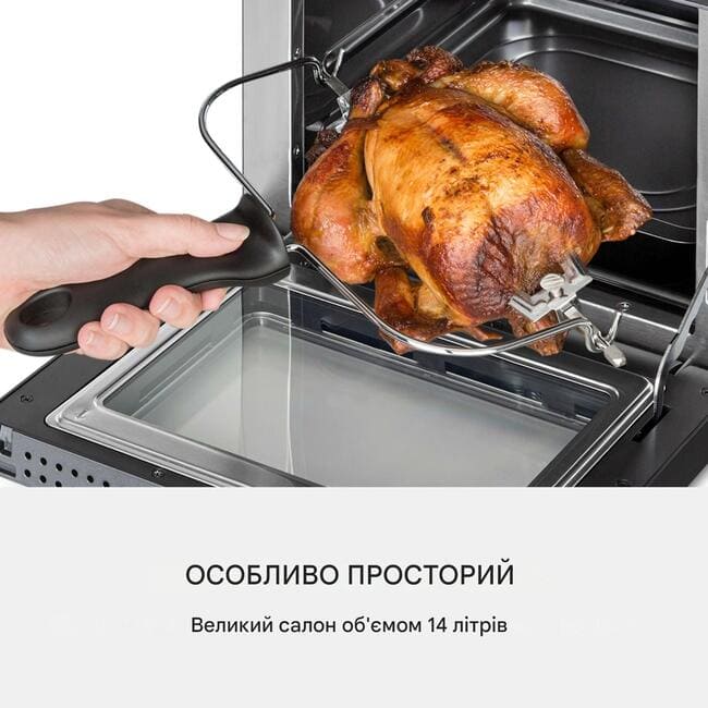 - Компактна фритюрниця з гарячим повітрям: з вертелом для хрусткої смаженої курки та багато іншого.