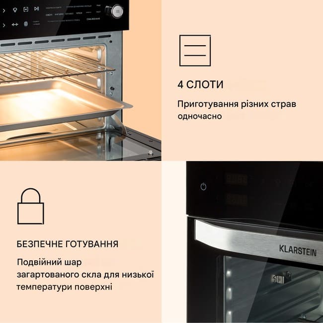 - Верхній і нижній обігрів, включаючи циркуляційний повітряний вентилятор