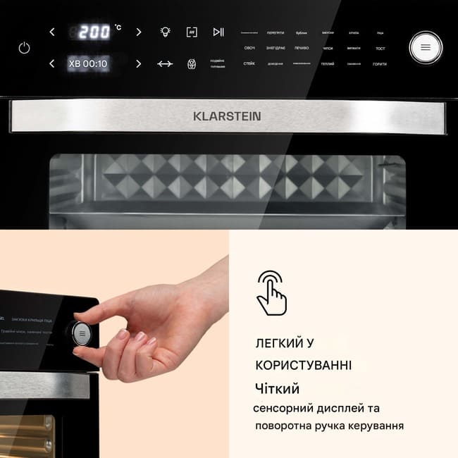 - Простий у використанні: чіткий сенсорний дисплей і поворотна ручка керування