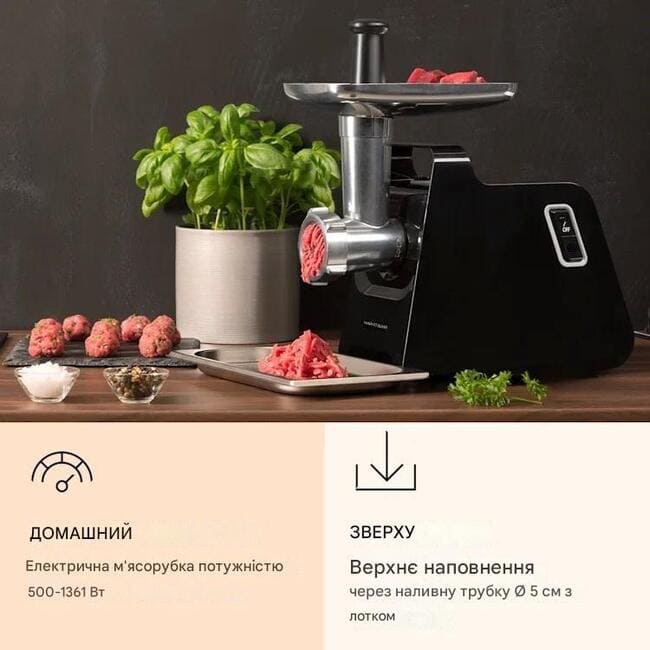 Електрична м'ясорубка Mighty Mince від Klarstein — це багатофункціональна м'ясорубка , яка вражає своїм широким набором аксесуарів, дуже простим використанням та чудовим дизайном.