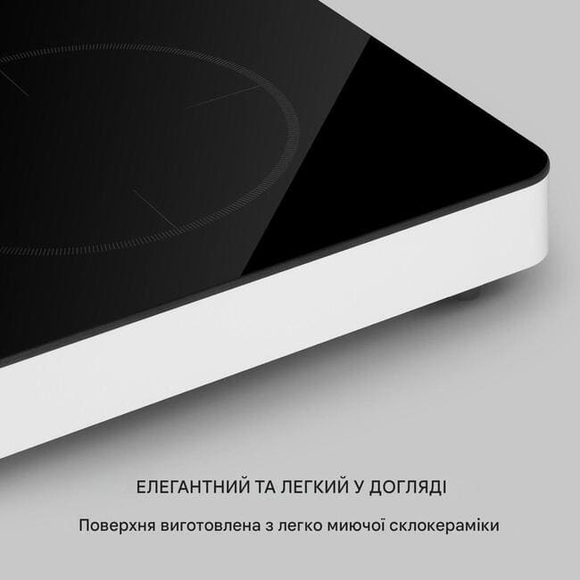Подвійна індукційна конфорка працює сама за себе , маючи лише одну поворотну ручку та дві кнопки для функцій посилення та таймера.