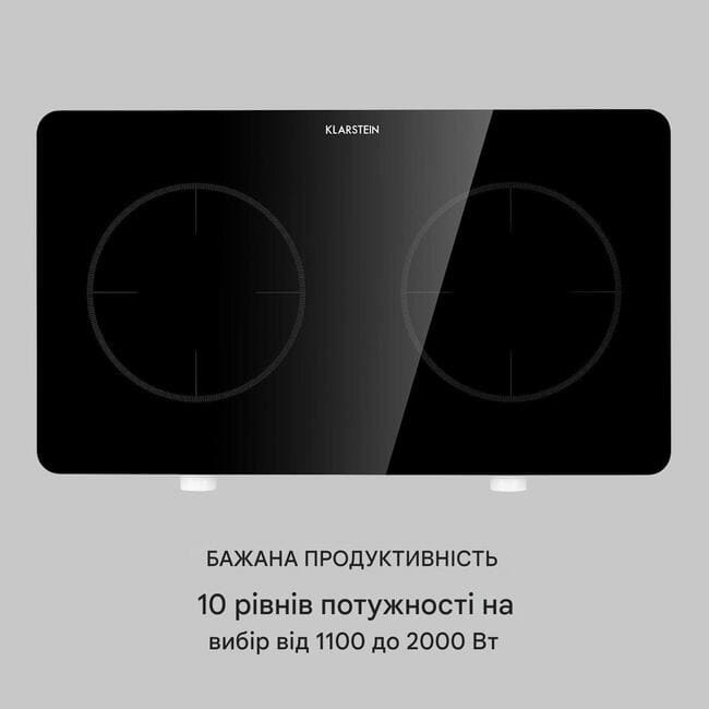Подвійна індукційна конфорка Klarstein FutureChef має дві індукційні конфорки з розпізнаванням каструлі. Дві пластини мають спільну потужність 3000 Вт на 10 рівнях кожна. Для надзвичайно швидкого нагрівання доступна функція Boost.