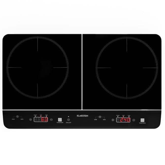 Індукційна варильна панель Klarstein VariCook Neo оснащена двома індукційними варильними поверхнями для каструль і сковорідок із діаметром дна від 12 до 22 см, які нагрівають вміст каструлі загальною потужністю 3500 Вт. Ліва конфорка може працювати з потужністю до 2000 Вт, а права – до 2000 Вт, кожну з яких можна регулювати окремо на 6 рівнях. Склокерамічна варильна панель керується за допомогою вбудованого сенсорного поля SenseControl зі світлодіодним дисплеєм. Окрім встановлення температури з кроком 20°C від 60 до 240°C, таймер також можна запрограмувати з кроком 5 хвилин для часу приготування від 5 до 180 хвилин. Після закінчення встановленого часу плита автоматично вимикається. Додаткові автоматичні функції спрощують експлуатацію та підвищують безпеку варильної панелі: Дитячий замок активує блокування клавіш, яке запобігає ненавмисному керуванню пристроєм дітьми або випадковій зміні налаштувань після програмування. Автоматичне виявлення каструлі гарантує, що активуються тільки необхідні частини індукційного контуру, що ефективно економить енергію під час приготування їжі. Крім того, активується захист від перегріву, якщо варильна панель стає занадто гарячою, а функція автоматичного вимкнення автоматично вимикає пристрій після 2 годин невикористання.