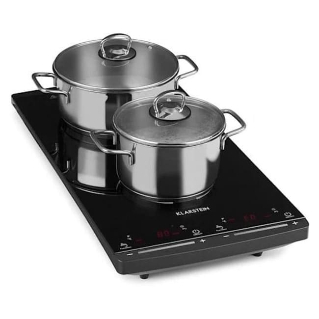 На індукційних варильних поверхнях є місце для 2 каструль або сковорідок, якими можна зручно керувати окремо за допомогою сенсорної поверхні на передній частині плити. Потужність можна регулювати на сенсорній панелі в 10 рівнях від 200-1300 Вт, температуру також можна встановити кроками від 60-240 °C і таймер від 1 до 80 хвилин. Операція є інтуїтивно зрозумілою та простою, оскільки вона була обмежена найнеобхіднішим.