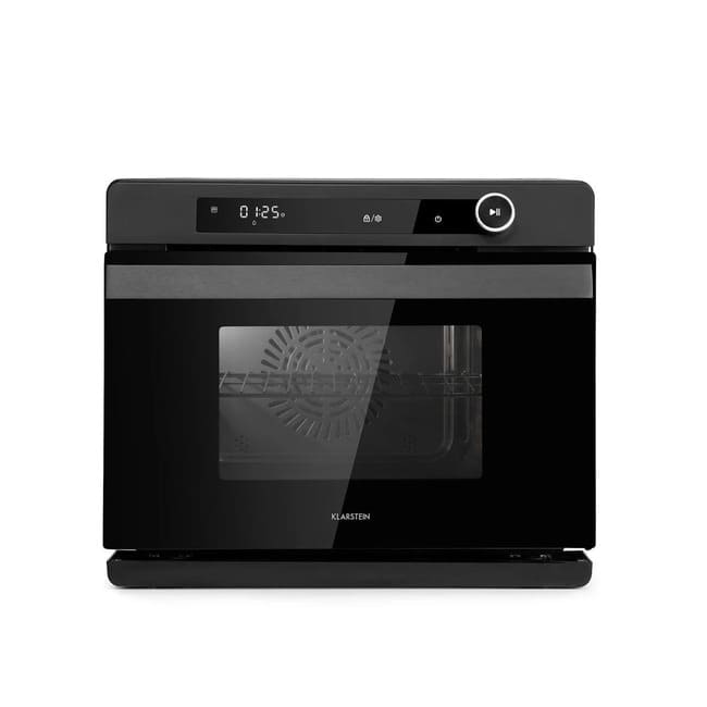Випустіть пару! У паровій духовці Klarstein VaporChef ви можете готувати м’ясні та овочеві страви на пару, щоб зберегти багато природних вітамінів і мінералів. Таким чином , пароварка має великий резервуар для води об’ємом 1,5 л і працює з потужною потужністю 1100 Вт під час приготування їжі на пару. Ви також можете використовувати пристрій як звичайну духовку з потужністю 2400 Вт: завдяки максимальній температурі до 230 °C, верхньому або нижньому нагріву та можливості встановити бажану температуру, духовка виправдає всі ваші очікування.