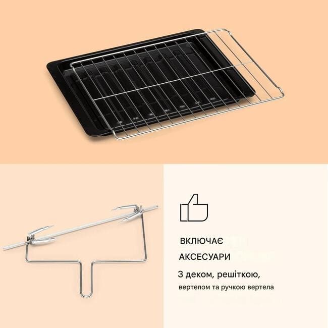 - Функції нагріву: приготування на пару, верхнє і нижнє нагрівання, конвекція на задній стінці, гриль і приготування на пару