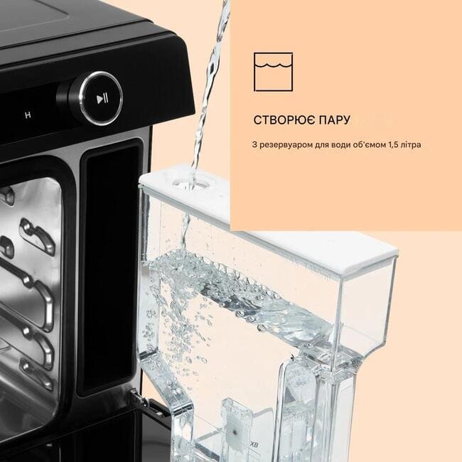 - програми: жарка на гарячому повітрі, гриль, гриль - на пару, на пару, розморожування, квашення та очищення