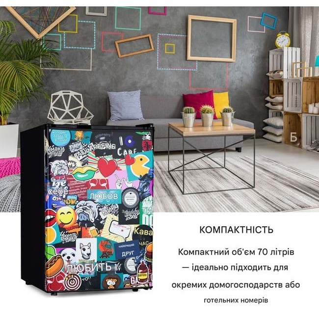Cool Vibe 70+ виправдовує свою назву не лише своїм інтер'єром: його передня частина має освіжаючий принт у стилі наклейки. Класні висловлювання, емодзи та зухвалі картинки - що завгодно, у Cool Vibe 70+ є!