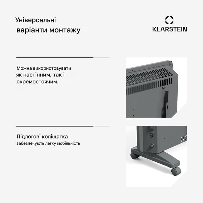 Потужний та енергоефективний : з вихідною потужністю 1500 Вт конвектор забезпечує швидке та ефективне нагрівання без викидів CO2.
