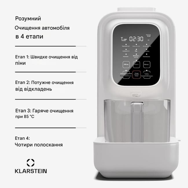 Завдяки елегантному, тонкому дизайну та зручній функції самоочищення, Klarstein Loire Vegan Drink Maker – це професійний блендер з багатьма попередньо встановленими функціями. Ним легко керувати за допомогою сенсорних кнопок та дисплея. Це дозволяє використовувати попередньо встановлені програми та індивідуально налаштовувати 12-годинний таймер. Ідеально підходить для початку дня зі свіжоприготованим напоєм. Також у комплекті є мірна чашка та щітка для очищення.