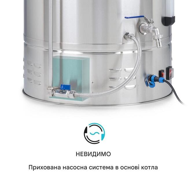 Знімний зерновий контейнер зі вставкою сита дозволяє дуже легко видалити відпрацьований зерно з попереднього сусла. Система швидкого з'єднання циркуляційного насоса дозволяє від'єднати шланг насоса і зливний кран за кілька простих кроків. Потім готове сусло можна переливати прямо в бродильний чан. Всі деталі виготовлені з нержавіючої сталі 304. Це означає, що пиво не проникає металевий присмак, і його дуже легко чистити.