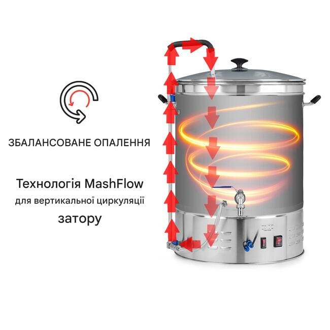 Запатентована тривимірна система циркуляції пивоварної системи Klarstein Brauheld Pro особливо практична : технологія MashFlow перекачує затор знизу вгору, забезпечуючи його рівномірний нагрів та циркуляцію. Циркуляція антипригарна забезпечує потужну підтримку при перемішуванні, забезпечуючи рух постійна в нижній частині котла.