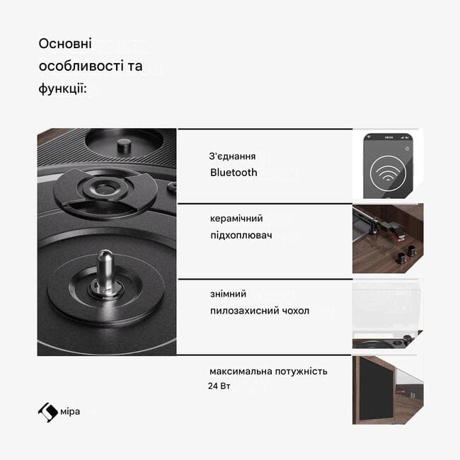 - Керамічний звукознімач і знімна кришка від пилу