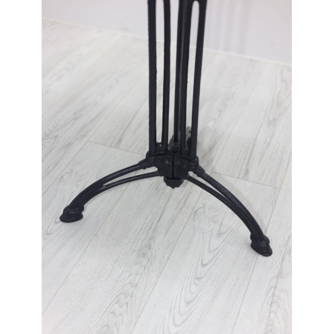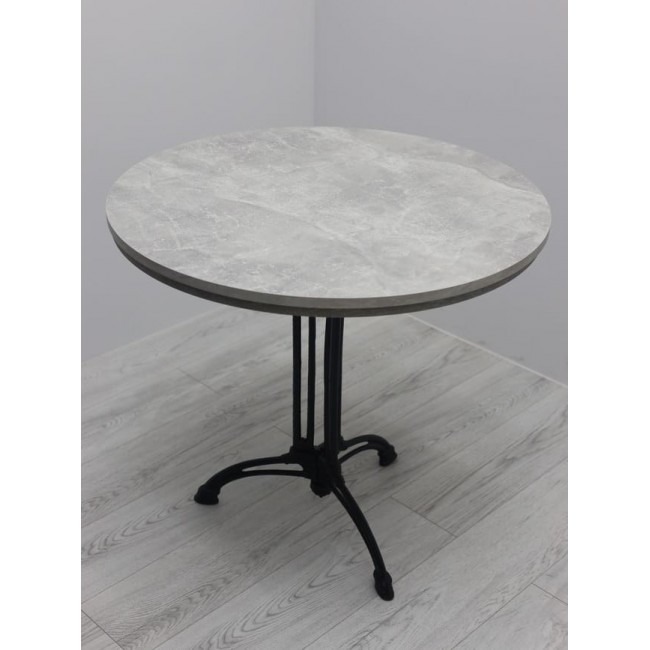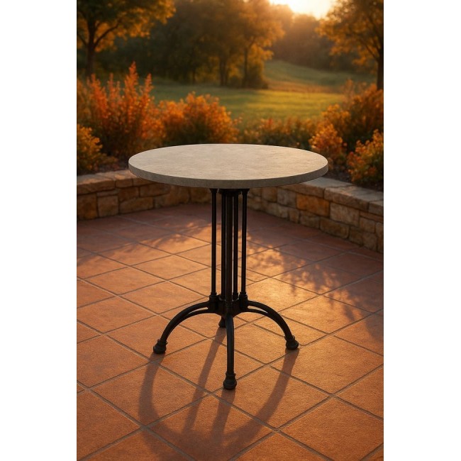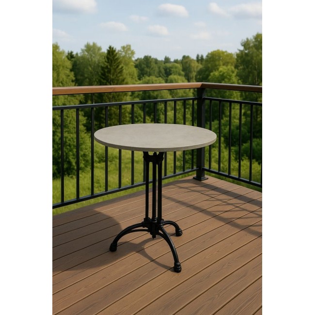 Бістро-стіл Patras-BK дуже елегантний та підходить як для використання в приміщенні, так і на закритій веранді. Стільниця діаметром 80 см, виготовлена з тирси з фактурою Арктичний Камінь, надає будь-якому інтер'єру блиску завдяки своїй полірованій поверхні. Міцна чавунна основа-тринога з квітковим оздобленням ще більше посилює цей ефект.