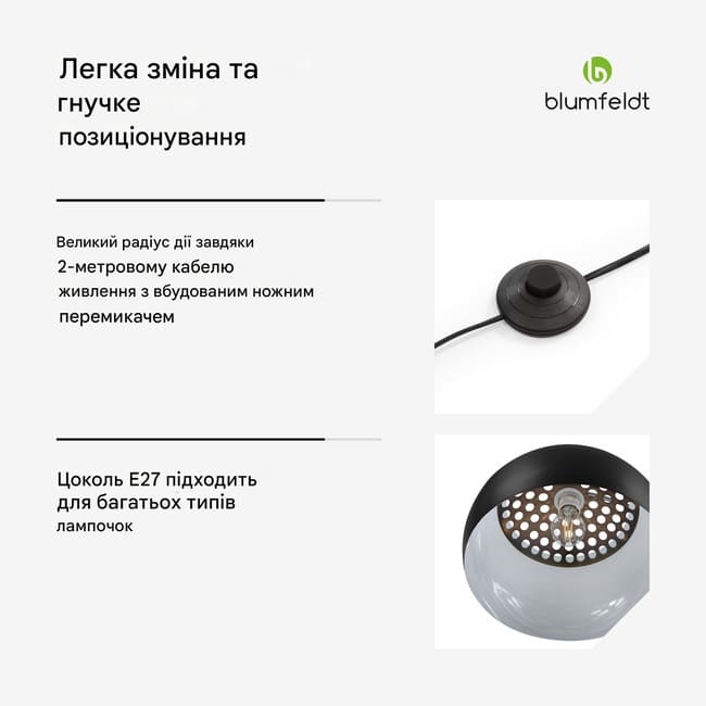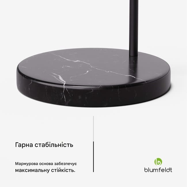 Попри витончений вигляд, модель відзначається високою стійкістю. Міцна основа з білого мармуру забезпечує надійну фіксацію конструкції та додає виробу солідності. Лампа оснащена стандартним цоколем E27, що дозволяє використовувати різні типи лампочок на ваш вибір. Двометровий кабель живлення гарантує зручне розміщення в інтер’єрі.