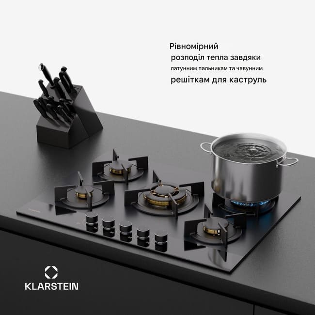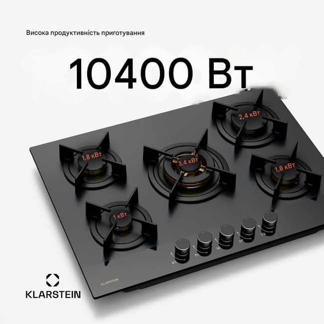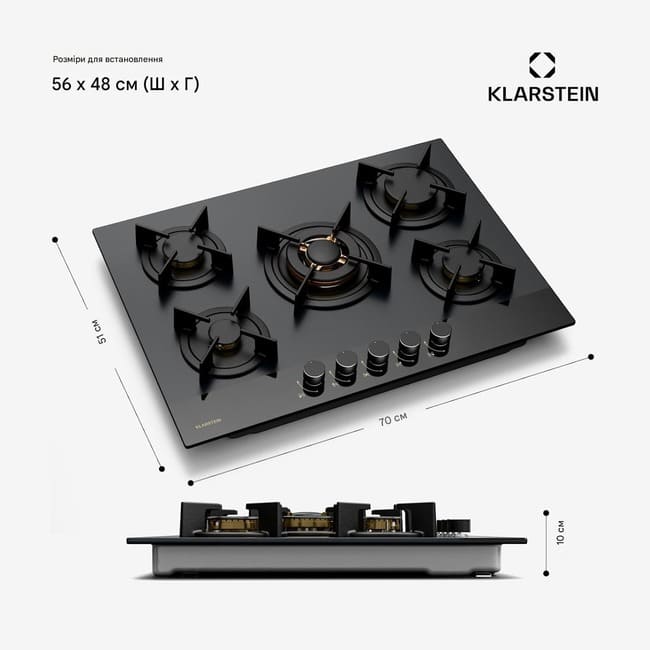 Відчуйте поєднання продуктивності, стилю та безпеки з газовою варильною поверхнею Klarstein Goldflame Nano – ідеальним доповненням до вашої кухні!