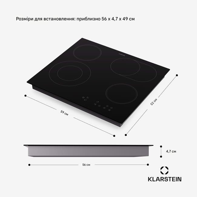 - тонка керамічна варильна поверхня з 4 зонами приготування