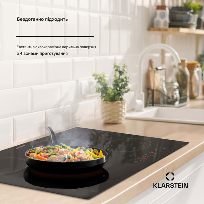 Гнучкість у приготуванні їжі – ось що важливо з варильною поверхнею Klarstein Virtuosa 4 : Електрична склокерамічна варильна поверхня.