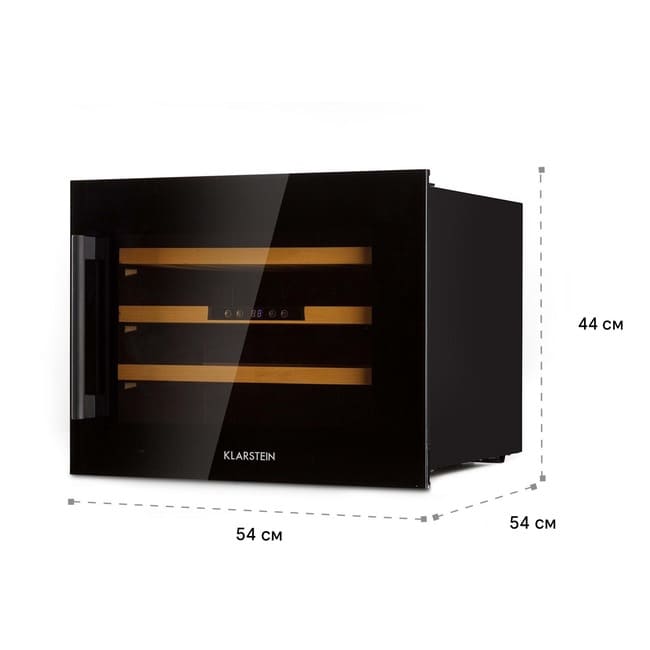Завдяки холодильнику для вина Klarstein Vinsider 24 Onyx Edition ви можете створити для вина умови, необхідні для підтримання температури пиття, а отже, і повного аромату. Все, що вам потрібно зробити, це відкрити елегантні вхідні двері з рамою OnyxCrystal и затемнене панорамне вікно та поставити вино на один із 3 дерев'яних підлог. Потім встановіть бажану температуру охолодження, і ваш винний холодильник Klarstein подбає про "винний клімат гарного настрою". Якщо ви та ваші гості хочете насолодитися вином, воно має бути потрібної температури: у будь-який час і в безпосередній близькості від вас.