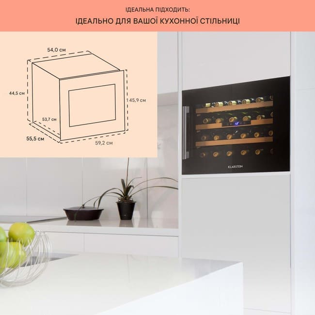 - Надзвичайно просторий: вбудований винний холодильник місткістю 24 пляшки вина