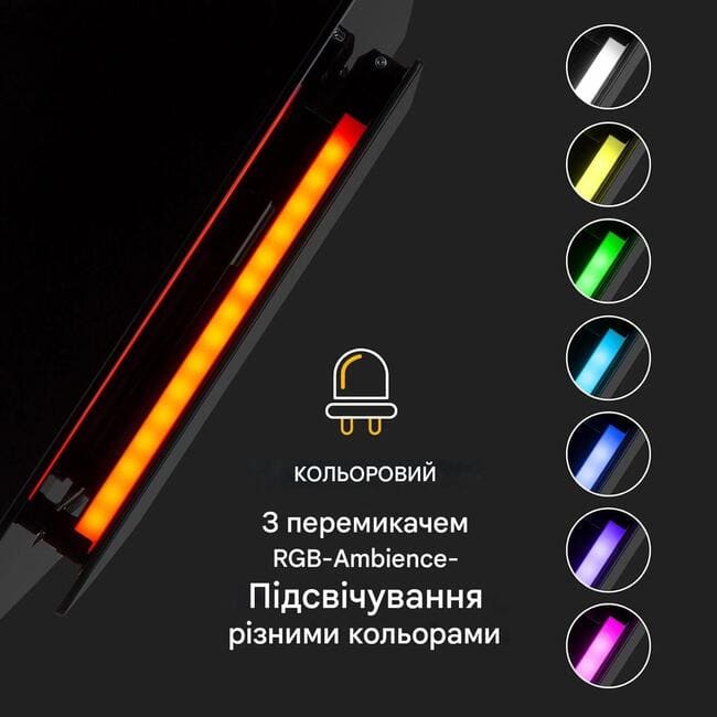 - окремо перемикається світлодіодне освітлення варильної поверхні