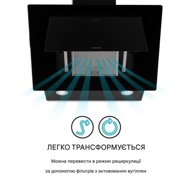 Витяжка Klarstein Eleonora надає на кухню блиск і атмосферу, а також усуває пару та запахи їжі .