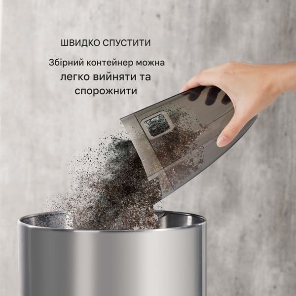 Система циклонного фільтра дуже ефективна й взагалі не вимагає мішка: контейнер для збору можна легко відокремити від ручного пилососа та спорожнити після використання. Тепер для наступного використання пилосос можна зарядити на компактній зарядній станції. Станцію навіть не потрібно постійно встановлювати: її можна гнучко встановити в будь-якому місці, і вона займає обмаль місця разом із пилососом.