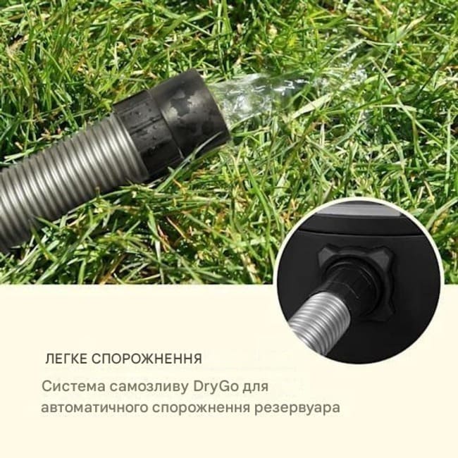 - Легке спорожнення: система самодренирования DryGo для автоматичного спорожнення резервуара
