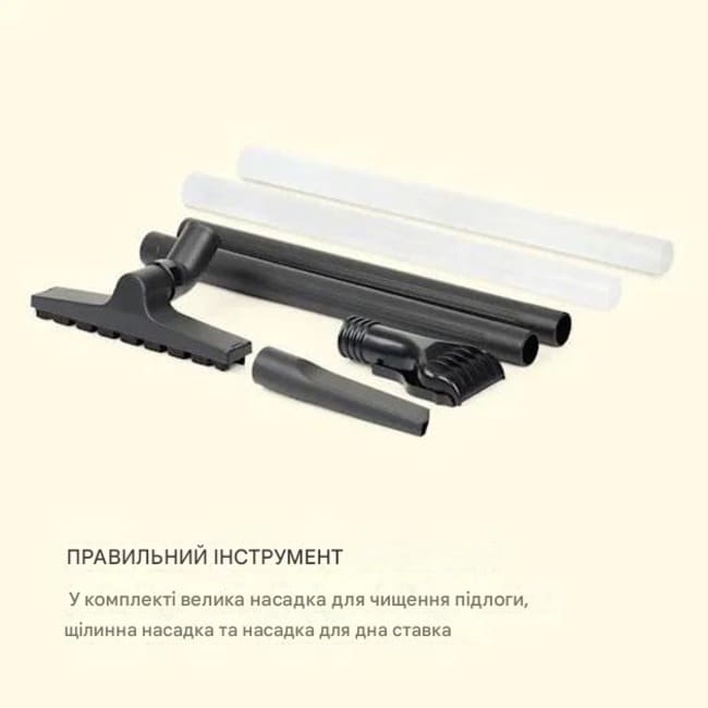 - Відповідний інструмент: включає в себе велику насадку для миття підлоги, щілинну насадку і насадку для підлоги ставка.