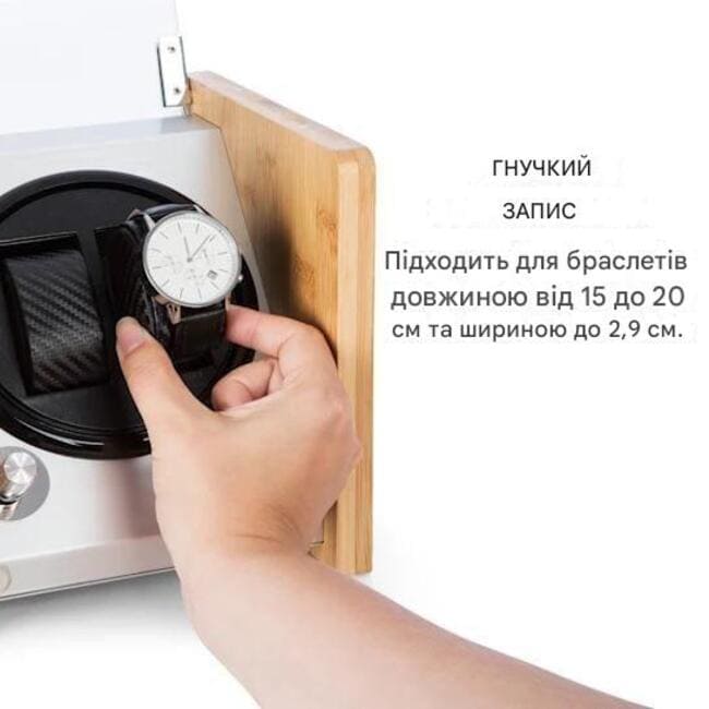 Завдяки скромним розмірам і завдяки плавному, тихому двигуну заводчик годинника можна легко розмістити прямо на тумбочці або в іншому тихому місці.