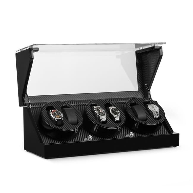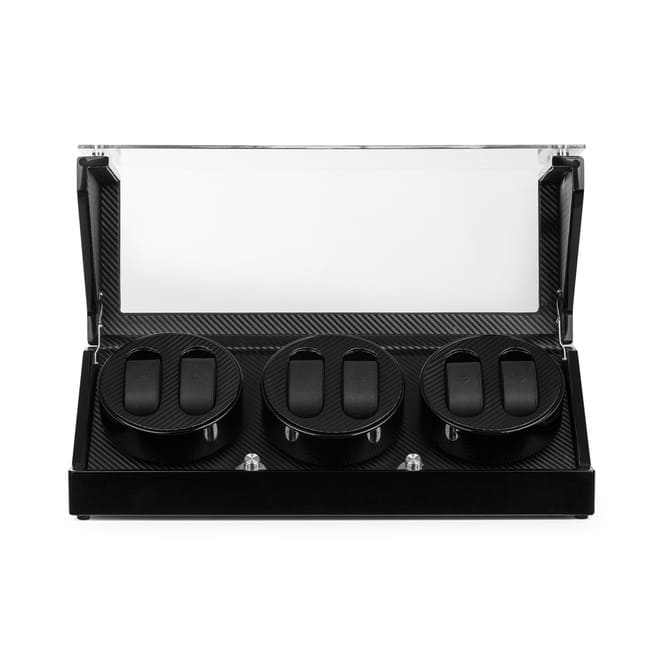 Зручний в салоні заводний пристрій для типового зберігання шести автоматичних годинників із вбудованим акумулятором.