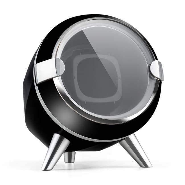 Елегантна подушка з чорного оксамиту служить підставкою для годинника та елегантно підкреслює кожен годинник. Навіть годинники з довгим ремінцем можна надійно тримати завдяки подовжувачу, що кріпиться. Прозора кришка захищає дорогоцінний хронометр від пилу та бруду. Є чотири режими на вибір для обертання годинника, які забезпечують його рух із різними інтервалами ліворуч чи праворуч або в різних напрямках обертання. Загалом годинник може обертатися зі швидкістю 650, 900, 1200 або 1500 обертів на день.