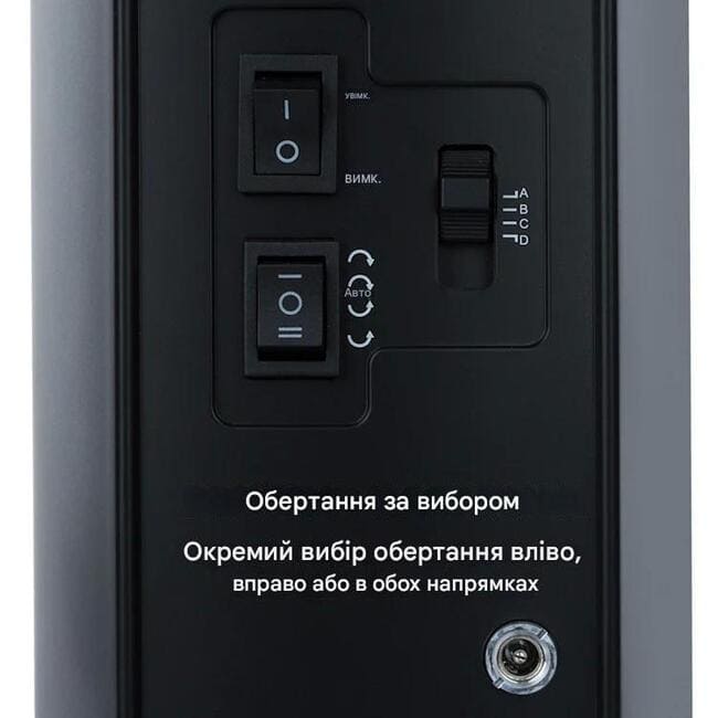 - Режими обертання: за годинниковою стрілкою / проти годинникової стрілки / автоматичний (двостороннє обертання)
