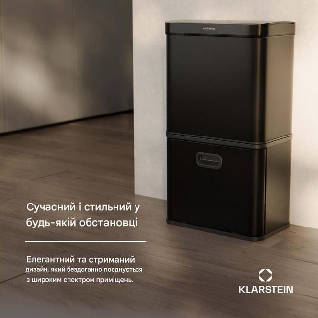 Відро для сміття з безконтактним датчиком Klarstein 56L є чудовим вибором для розділення та утилізації відходів у вашому домі чи офісі. Завдяки місткості 56 літрів і тонкому елегантному дизайну з матово-чорної нержавіючої сталі ця урна не тільки функціональна, але й приваблива.
