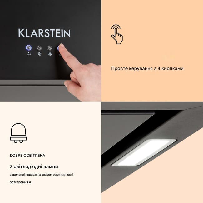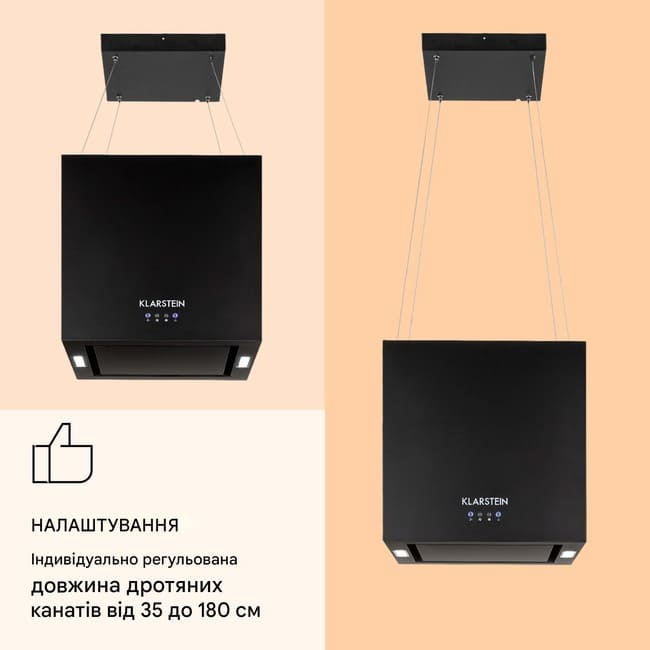 Витяжка Chandelier від Klarstein поєднує стиль та функціональність: з потоком повітря до 596 м³/год, острівна витяжка забезпечує чисте повітря на кухні. Дві вбудовані світлодіодні панелі освітлюють ваші кулінарні процеси яскраво, як вдень. Усіма функціями зручно керувати за допомогою 4-кнопкової панелі керування. Високоякісні матеріали та кубічний дизайн поєднуються, створюючи справжню привабливість. З трьома рівнями потужності, низьким рівнем шуму роботи 69 дБ та класом енергоефективності А, Klarstein Chandelier є абсолютним переможцем. Тому острівна витяжка є не тільки функціональною, але й стильним елементом будь-якої сучасної кухні.