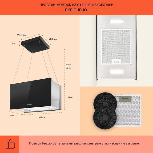 - Витяжка в режимі рециркуляції; неможливий перехід на роботу з витяжним повітрям