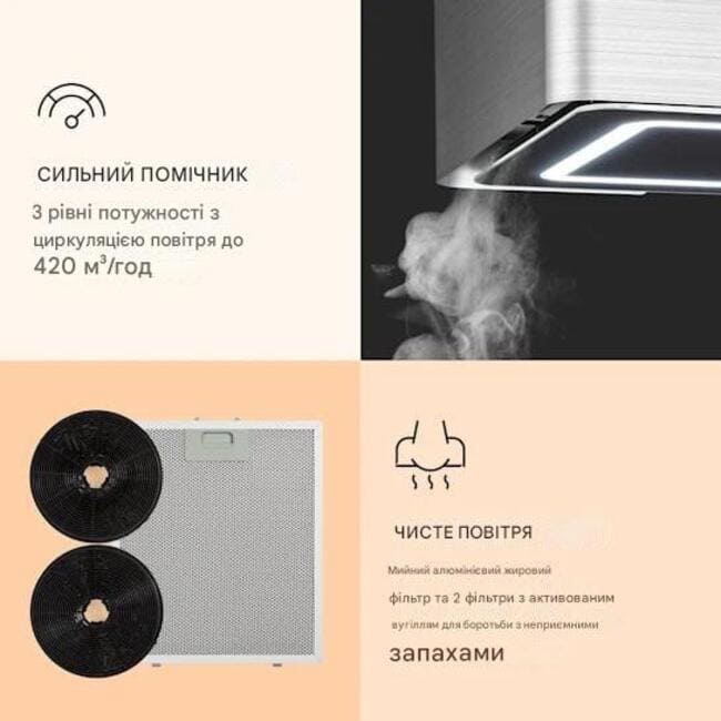 Острівна витяжка Futurelight Smart з циркуляцією повітря 420 м³/год LED нержавіюча сталь