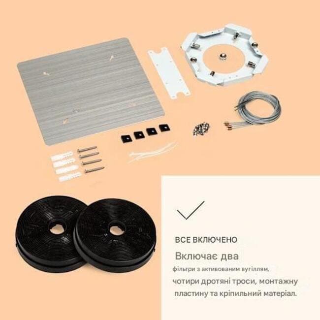 - Вільно-підвісна: острівна витяжка на стелі з двигуном потужністю 200 Вт