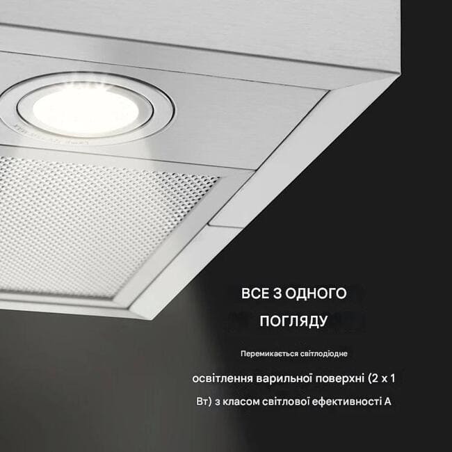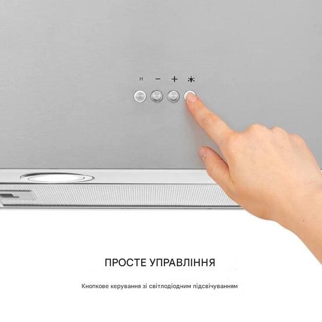 - Вимикач увімкнення/вимкнення на передній частині витяжки