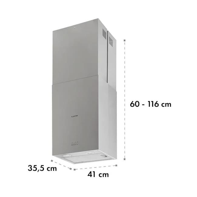 Витяжна колона надійно та міцно закріплена до стелі та надійно видаляє будь-які кухонні випари. Завдяки трьом рівням потужності він безперестанку циркулює до 624 м³/год повітря, тим самим позбавляючи повітря на кухні від жиру та запахів. Це робить його особливо підходящим для великих кімнат з кухонним островом. У всіх режимах роботи вбудоване світлодіодне підсвічування варильної поверхні, яке можна перемикати, забезпечує яскраве біле світло. Рівні роботи та освітлення легко вибираються за допомогою передньої панелі керування. Острівна витяжка підходить як для відведення повітря, так і для рециркуляції. Він має кришку димоходу довжиною приблизно 60 см, яка надійно з'єднана з несучою конструкцією. Для режиму рециркуляції доступні додаткові фільтри з активованим вугіллям (номер артикулу: 10032843), які додатково видаляють запахи з повітря. Зовнішній вигляд острівної витяжки Klarstein Structura також надзвичайно елегантний . Високоякісний корпус з нержавіючої сталі надає кожному кухонному острову вишуканого блиску.