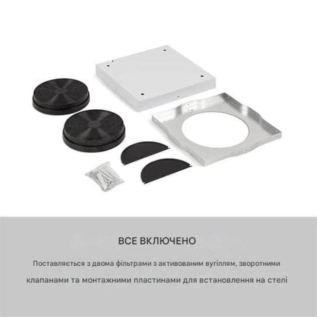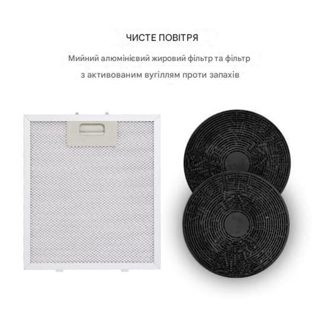 Зверніть увагу, що ця витяжка призначена для режиму рециркуляції та вже оснащена відповідними фільтрами з активованого вугілля.