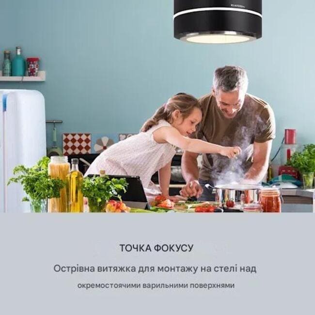 - Фокус: острівна витяжка для монтажу на стелі над окремими кухонними зонами