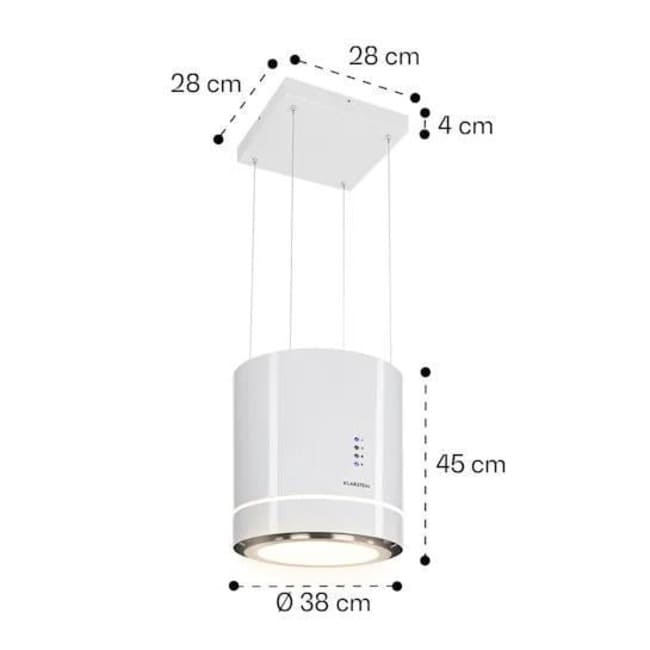 Ідеальний варіант для кухонного острова. З витяжкою Klarstein Tron Ambience окремо стоячі зони для приготування їжі набувають розкішного завершення, тому що з цією острівною витяжкоюце назва програми. Витяжка вільно звисає зі стелі на стійких до розриву сталевих тросах довжиною 140 см і з механічною ефективністю піклується про кухонні пари. На трьох рівнях потужності він невпинно циркулює пару з потоком повітря до 540 м³/год, видаляючи таким чином жир і запахи з кухонного повітря. Це робить його ідеальним для великих просторів американської острівної кухні. На всіх робочих рівнях вбудоване світлодіодне освітлення варильної поверхні забезпечує яскраве біле світло, а один із 3 рівнів потужності можна легко вибрати за допомогою передньої панелі керування з цифровим дисплеєм.