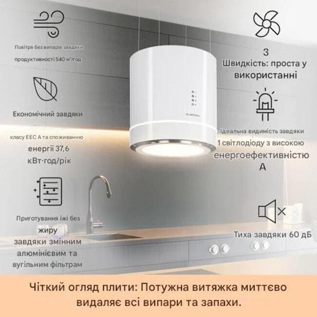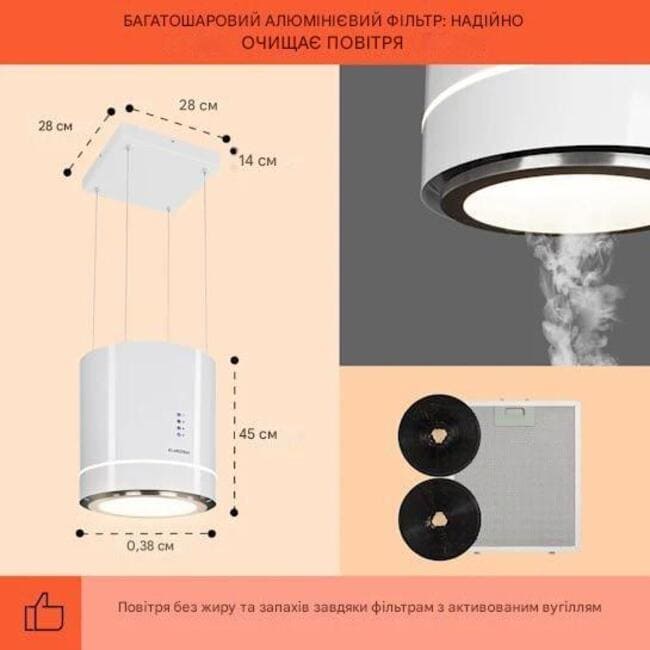 Острівна витяжка Tron Ambience Ø38см рециркуляція 540м³/год LED
