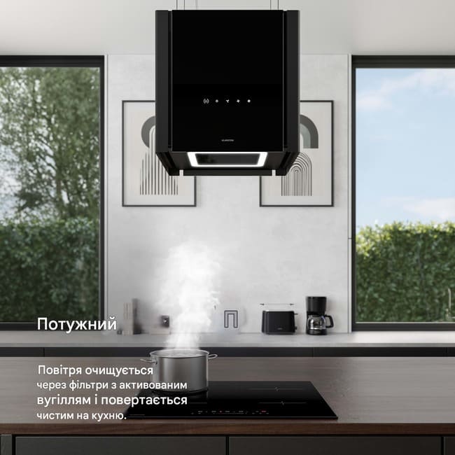 - Система фільтрації: алюмінієвий фільтр, який можна мити в посудомийній машині, та 2 вугільні фільтри