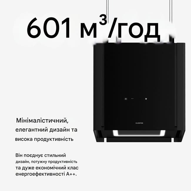 Потужність повітряного потоку: до 601 м³/год для швидкого видалення пари та запахів.