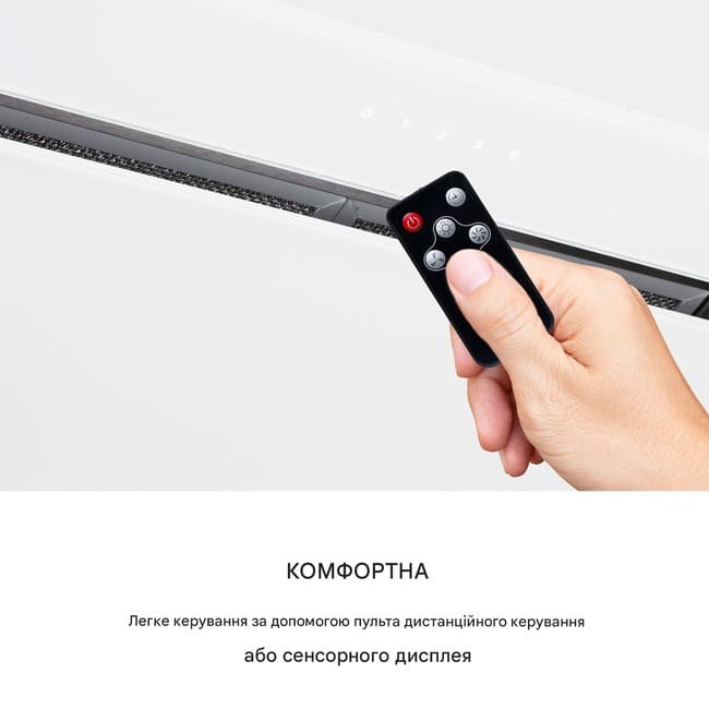 - Просте управління: за допомогою сенсорного дисплея або пульта дистанційного керування