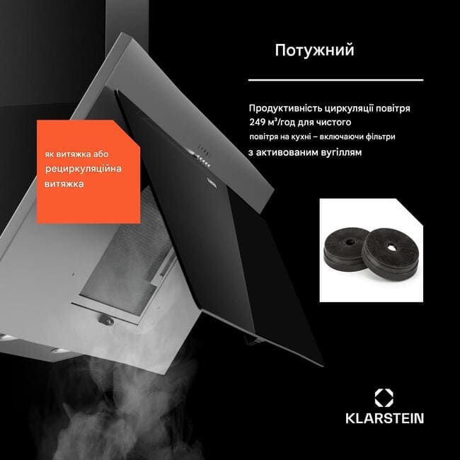 Найкраще повітря на кухні: витяжка Klarstein Alessia надає кухні елегантного вигляду і динамічно усуває пару та серпанок, що виникають при приготуванні їжі.