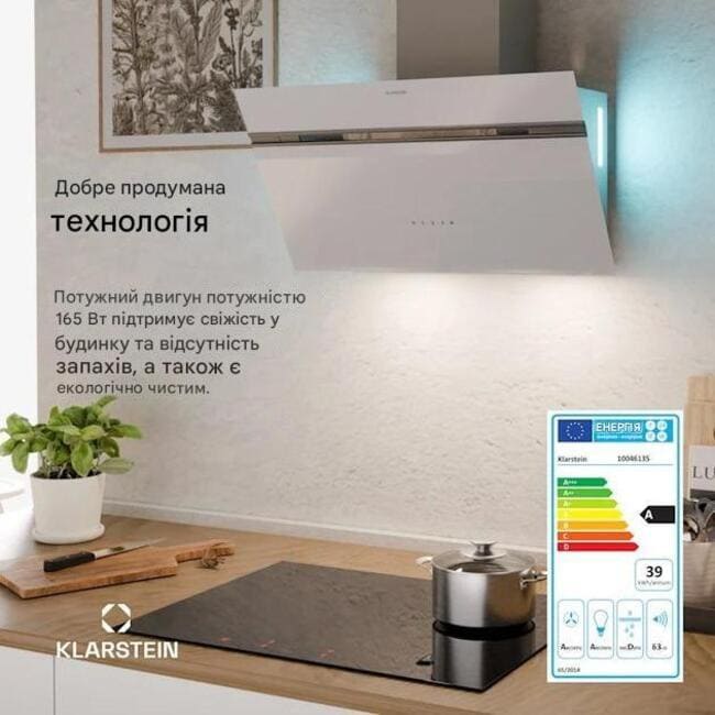 Витяжка Klarstein Alina швидко справляється з туманом і бульбашками над плитою. Завдяки трьом рівням потужності, вашу роботу можна легко адаптувати до процесу приготування. На найвищому рівні продуктивності він транспортує до 594 м3/год відпрацьованого повітря з кухні, а також справляється з приготуванням кількох страв. Завдяки сучасним технологіям рівень шуму та споживання енергії залишаються приємно низькими на рівні 63 дБ та класі енергоефективності A.