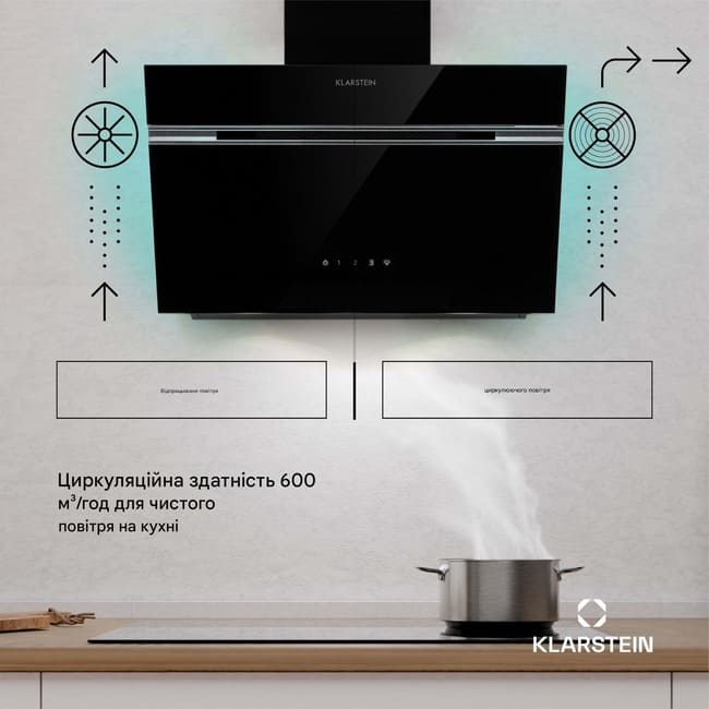 - Потужний проти димки: максимальна продуктивність витяжного повітря до 600 м³/год